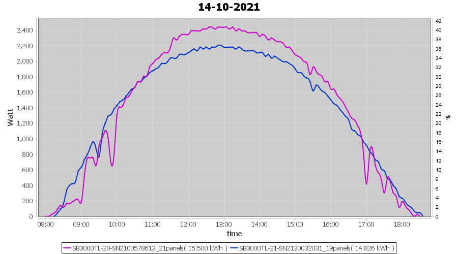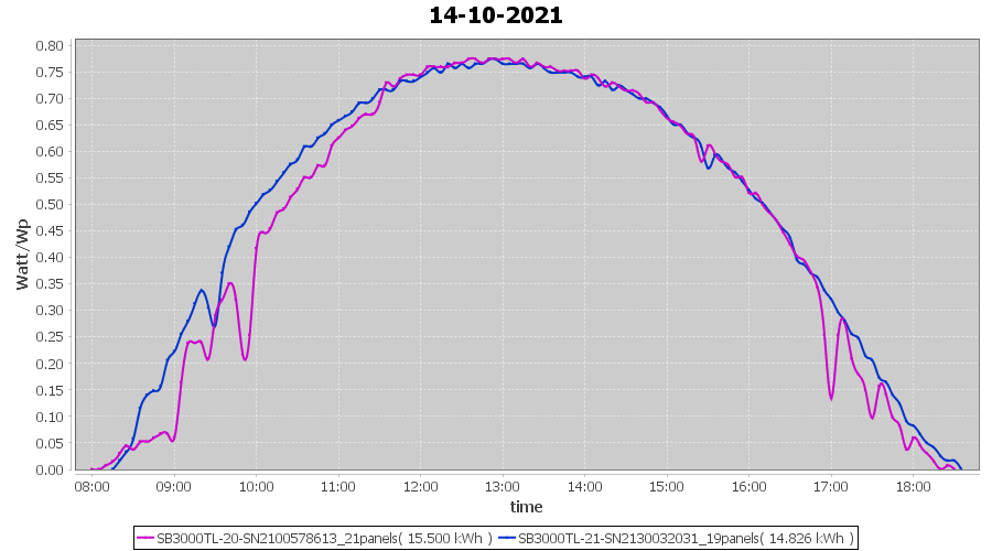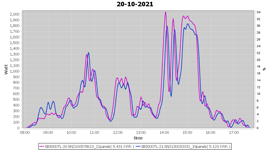 | 14-10-2021 | kWh | Sum | W/Wp | 30.326 | 6000 | 5.1 | 14.026 | € 10.90 | 4.9 |