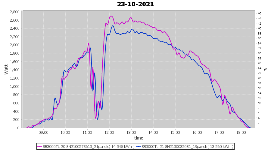 | 23-10-2021 | kWh | Sum | W/Wp | 28.106 | 6000 | 4.7 | 12.999 | € 10.10 | 4.5 |