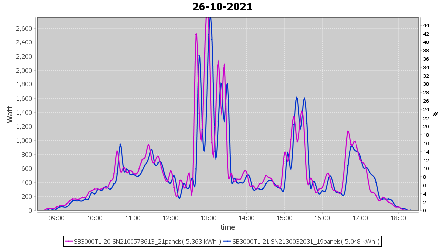 | 26-10-2021 | kWh | Sum | W/Wp | 10.411 | 6000 | 1.7 | 4.815 | € 3.74 | 1.7 |