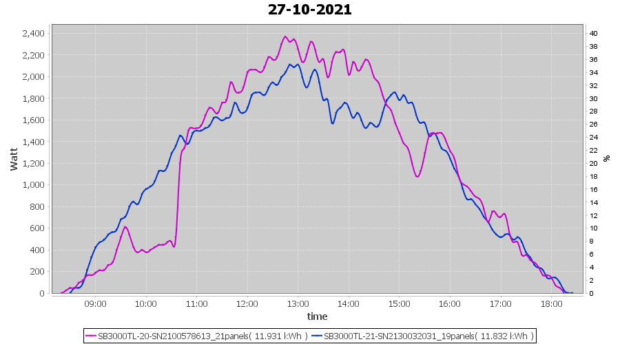 | 27-10-2021 | kWh | Sum | W/Wp | 23.763 | 6000 | 4.0 | 10.990 | € 8.54 | 3.8 |
