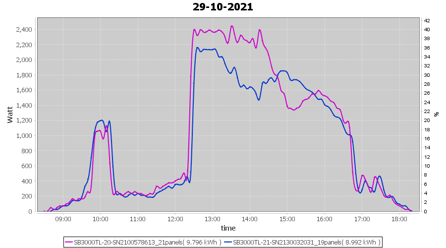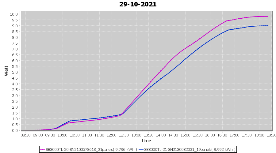 | 29-10-2021 | kWh | Sum | W/Wp | 18.788 | 6000 | 3.1 | 8.689 | € 6.75 | 3.0 |