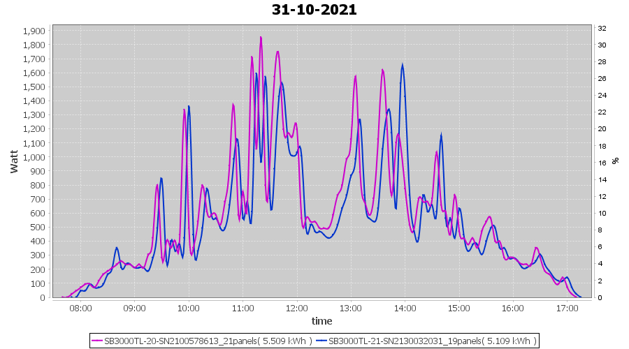 | 31-10-2021 | kWh | Sum | W/Wp | 10.618 | 6000 | 1.8 | 4.911 | € 3.82 | 1.7 |