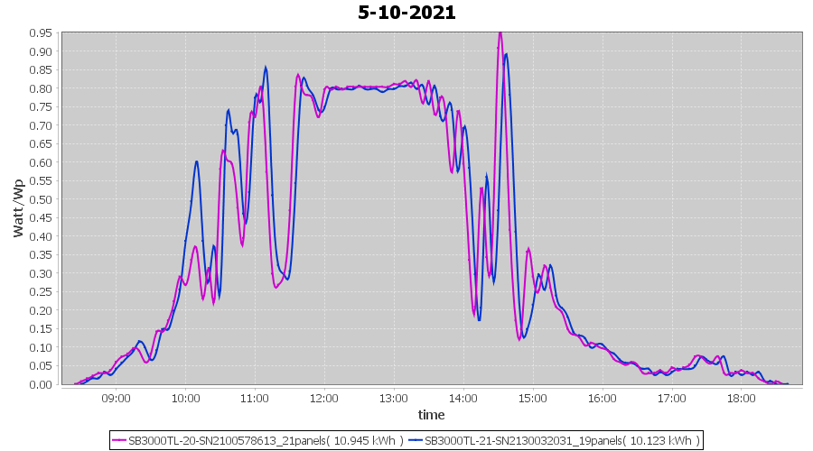 | 5-10-2021 | kWh | Sum | W/Wp | 21.068 | 6000 | 3.5 | 9.744 | € 7.57 | 3.4 |