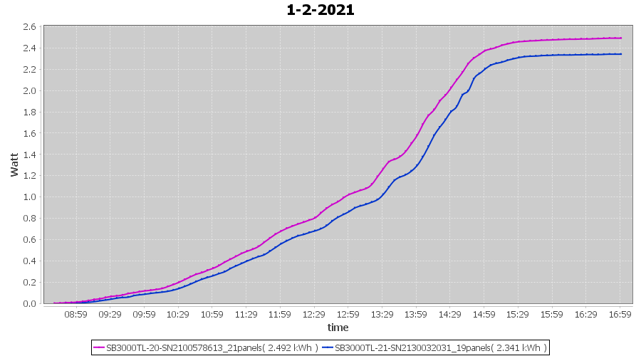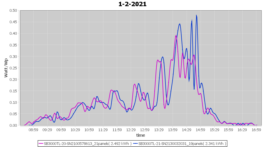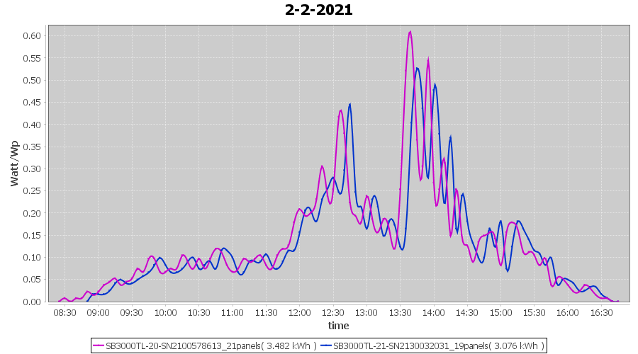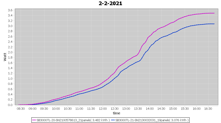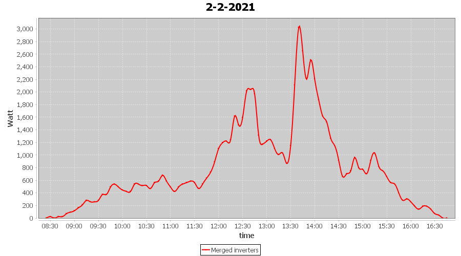 | 2-2-2021 | kWh | Sum | W/Wp | 6.558 | 6000 | 1.1 | 3.033 | € 2.36 | 1.8 |