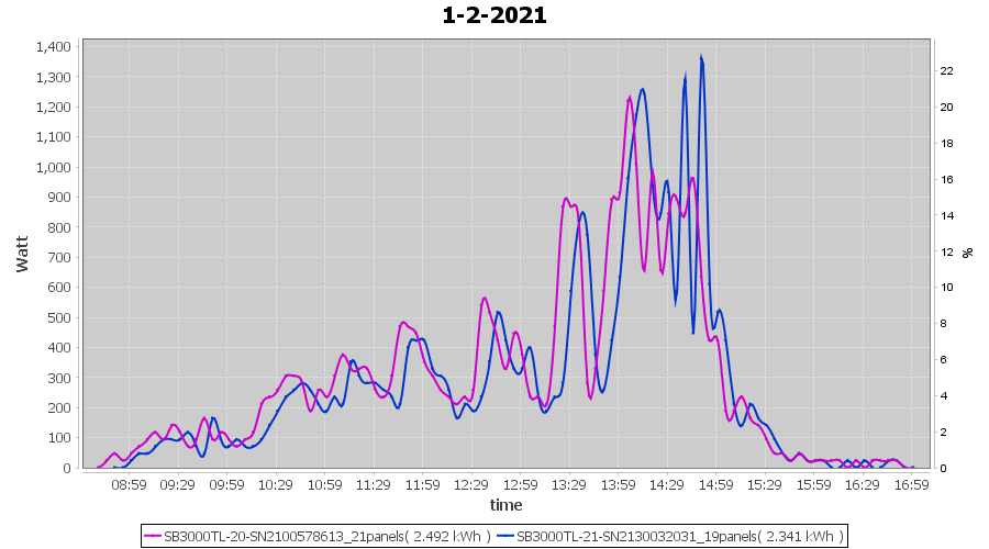 | 1-2-2021 | kWh | Sum | W/Wp | 4.833 | 6000 | 0.8 | 2.235 | € 1.74 | 1.3 |