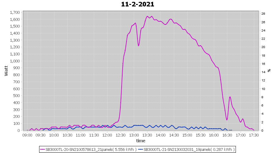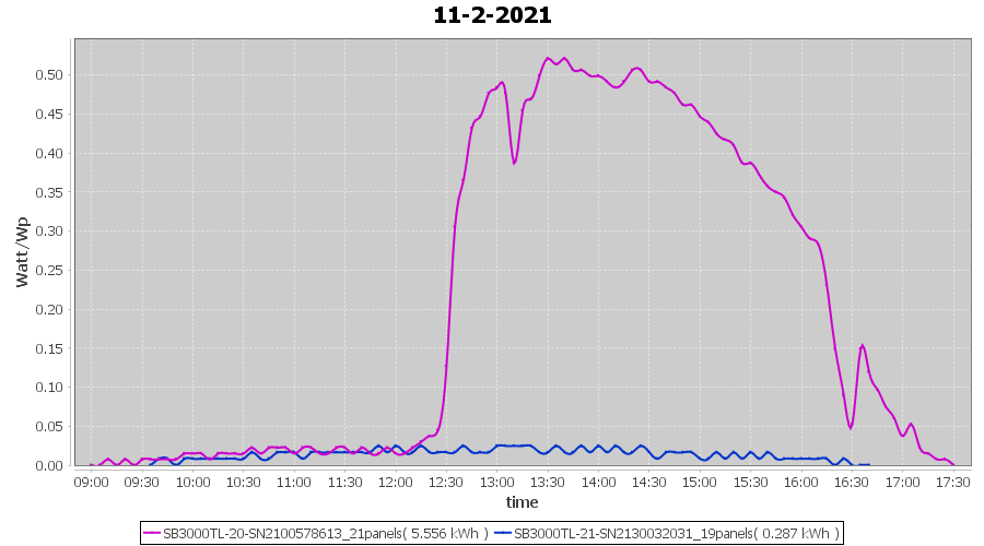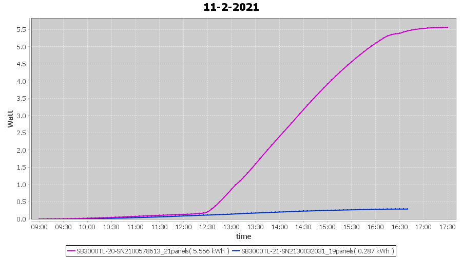| 11-2-2021 | kWh | Sum | W/Wp | 5.843 | 6000 | 1.0 | 2.702 | € 2.10 | 1.6 |