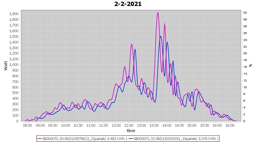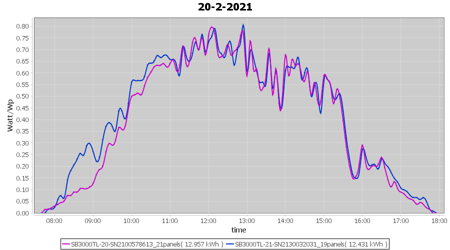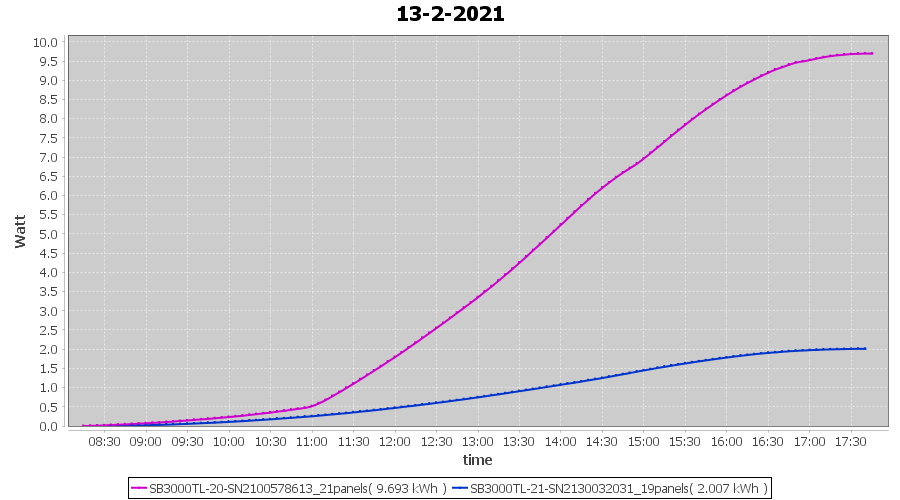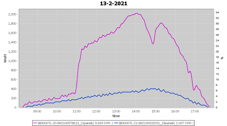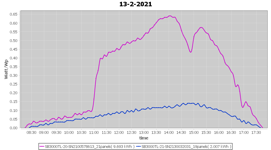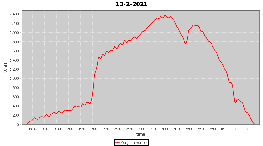 | 13-2-2021 | kWh | Sum | W/Wp | 11.700 | 6000 | 1.9 | 5.411 | € 4.21 | 3.2 |