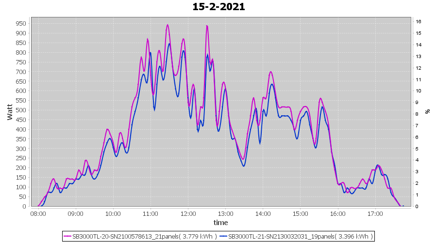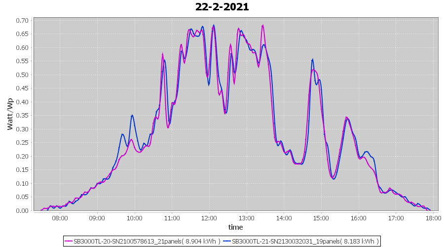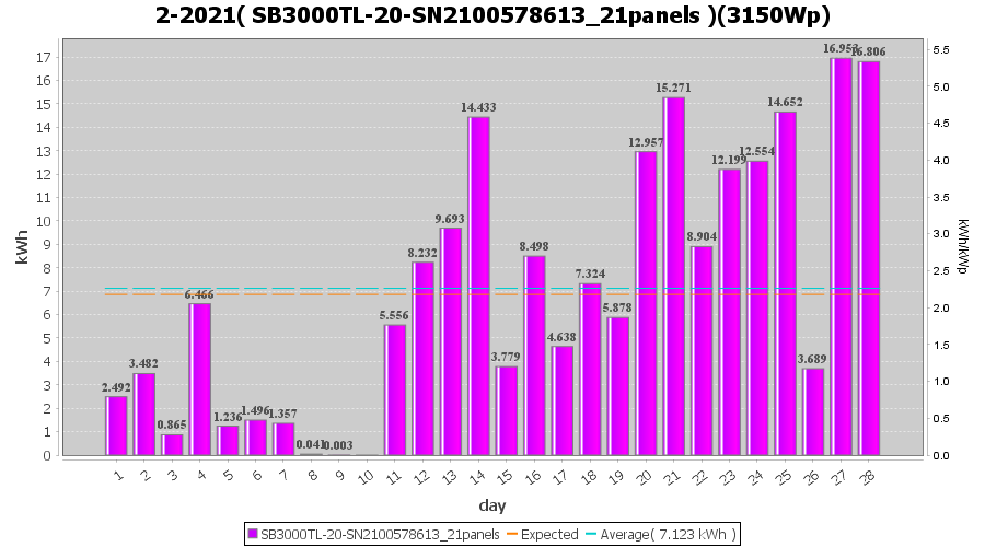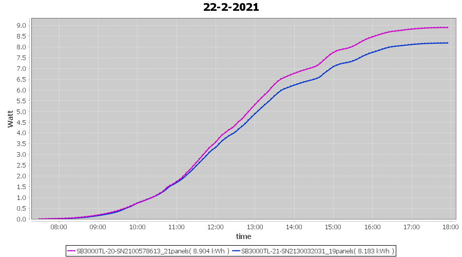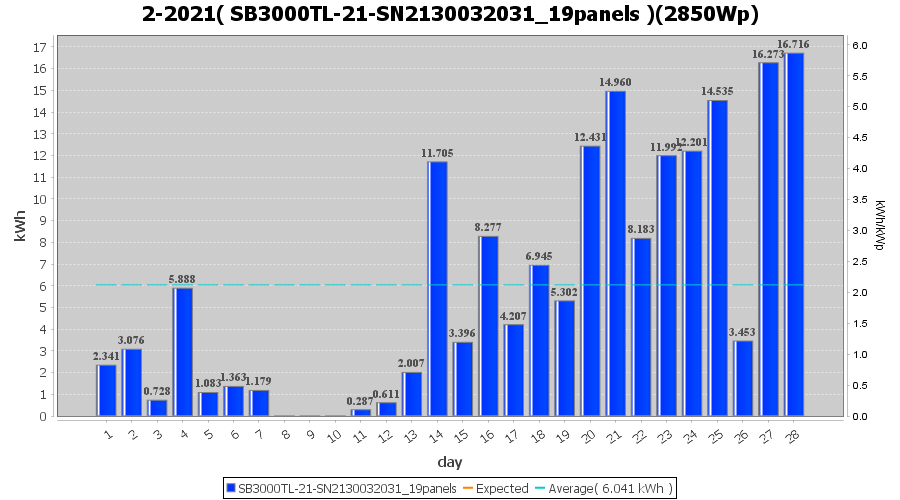 | 22-2-2021 | kWh | Sum | W/Wp | 17.087 | 6000 | 2.8 | 7.903 | € 6.14 | 4.6 |
