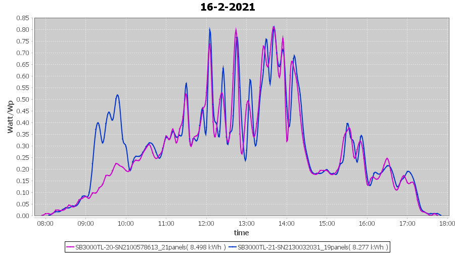 | 16-2-2021 | kWh | Sum | W/Wp | 16.775 | 6000 | 2.8 | 7.758 | € 6.03 | 4.6 |