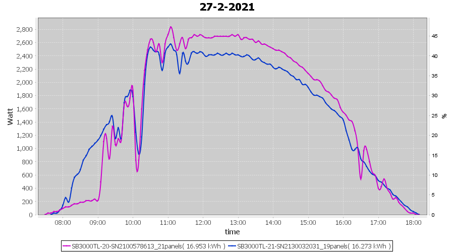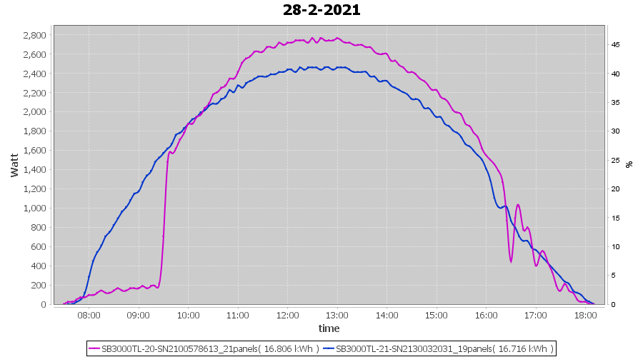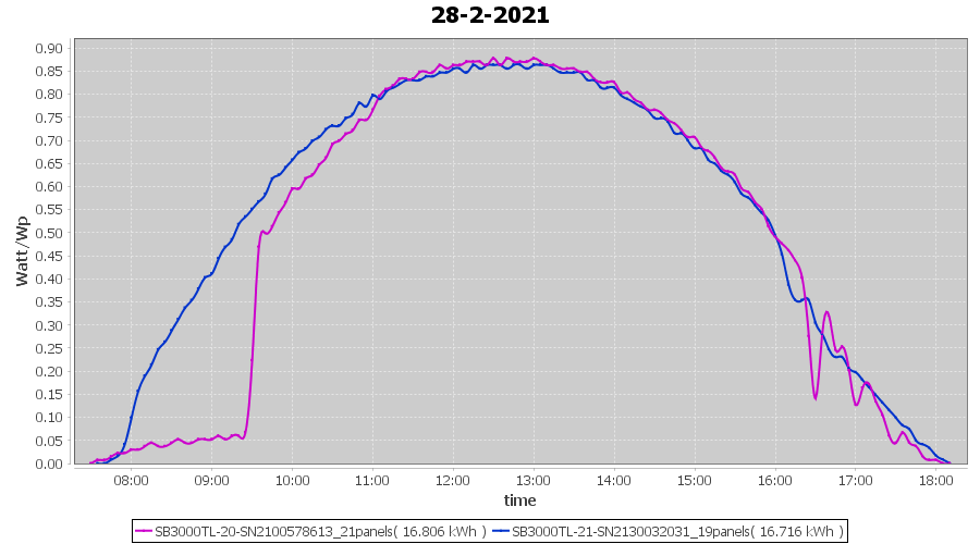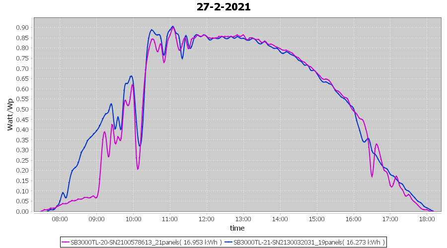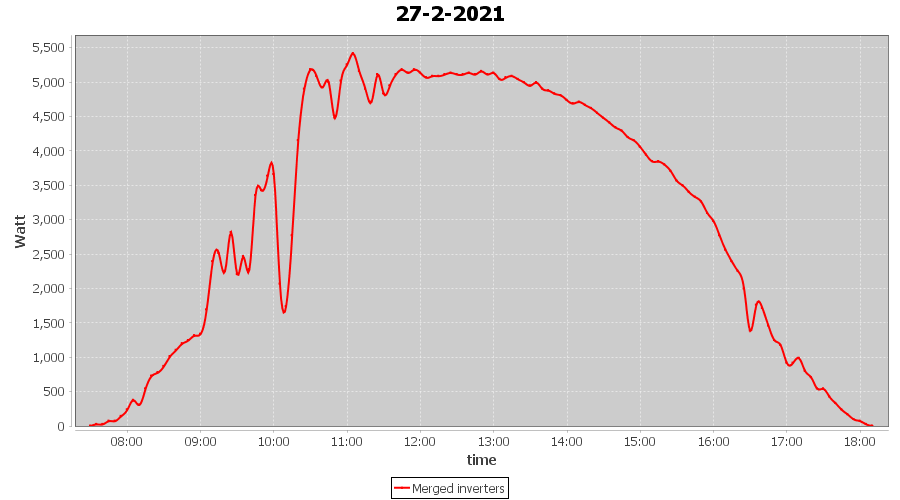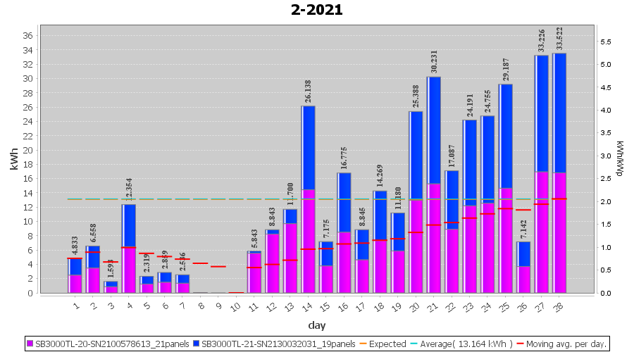 | 27-2-2021 | kWh | Sum | W/Wp | 33.226 | 6000 | 5.5 | 15.367 | € 11.94 | 9.0 |