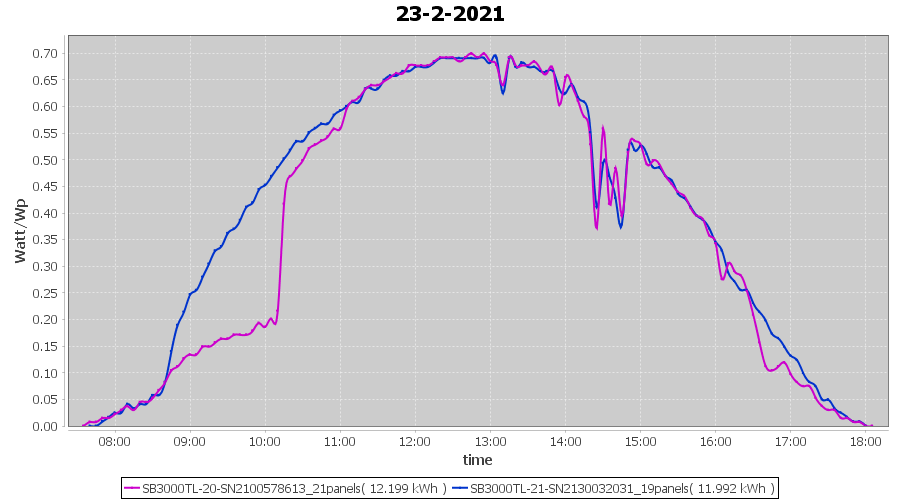 | 23-2-2021 | kWh | Sum | W/Wp | 24.191 | 6000 | 4.0 | 11.188 | € 8.70 | 6.6 |
