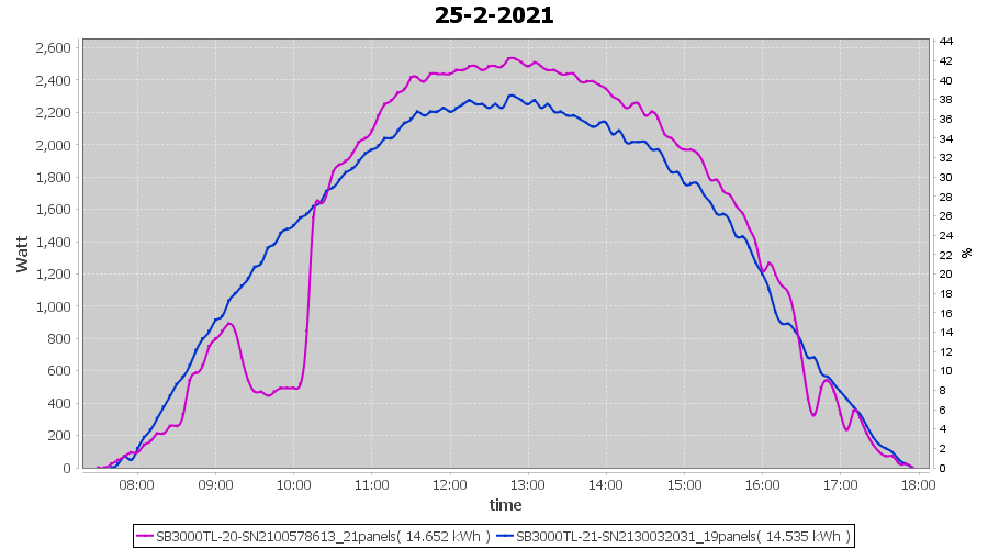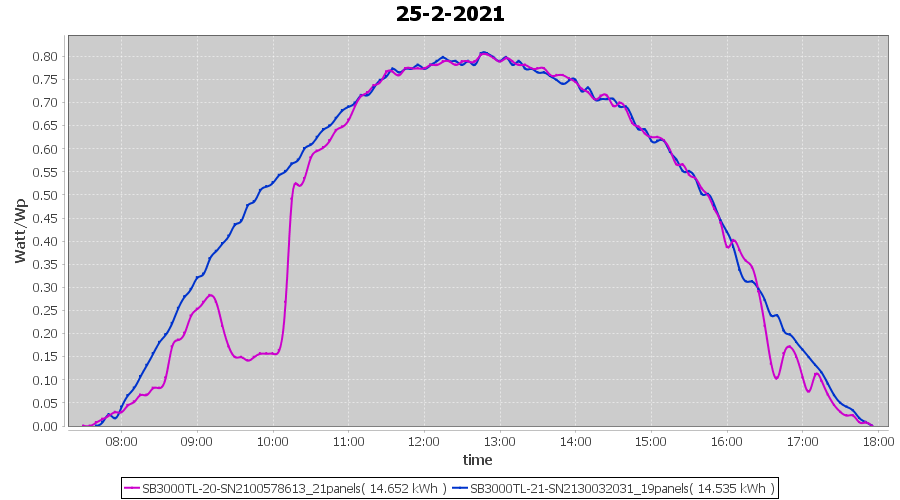 | 25-2-2021 | kWh | Sum | W/Wp | 29.187 | 6000 | 4.9 | 13.499 | € 10.49 | 7.9 |