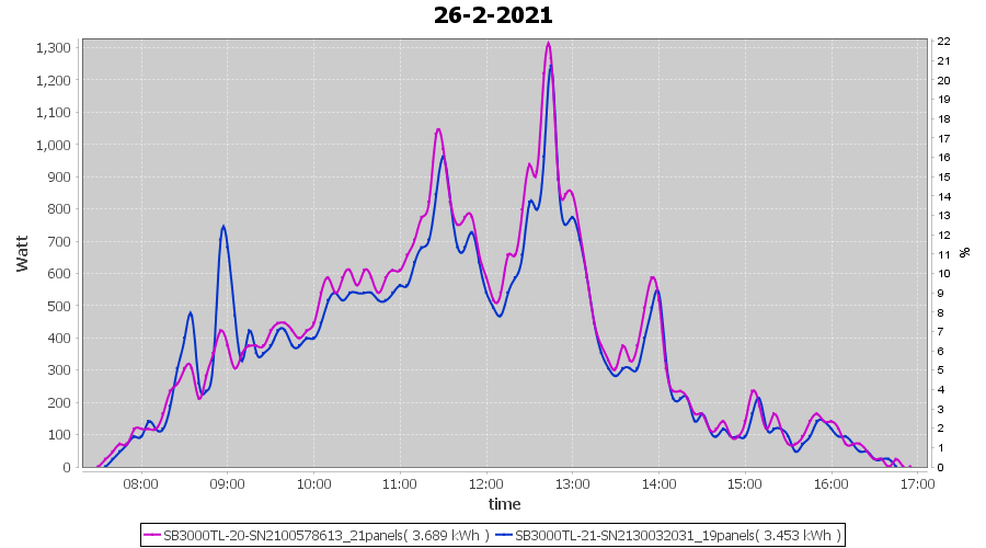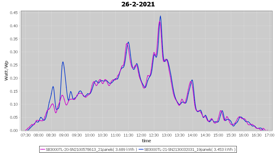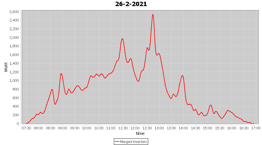 | 26-2-2021 | kWh | Sum | W/Wp | 7.142 | 6000 | 1.2 | 3.303 | € 2.57 | 1.9 |