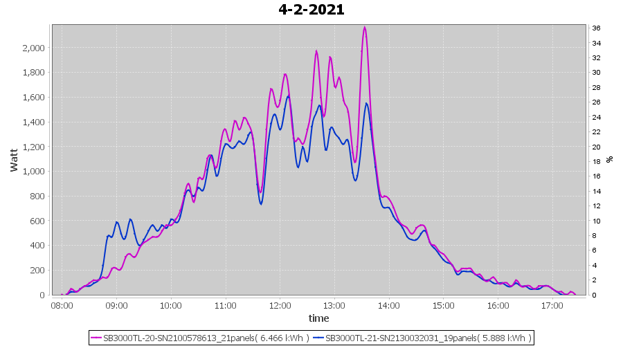 | 4-2-2021 | kWh | Sum | W/Wp | 12.354 | 6000 | 2.1 | 5.714 | € 0.00 | 3.4 |