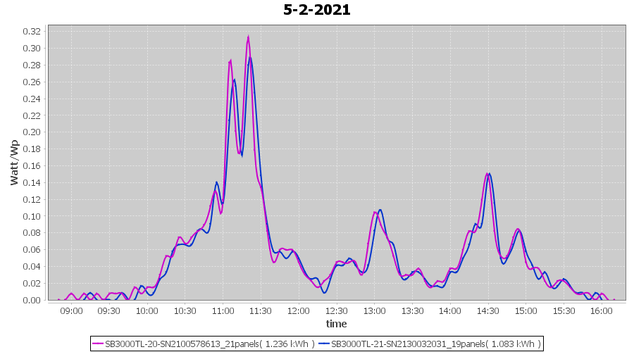 | 5-2-2021 | kWh | Sum | W/Wp | 2.319 | 6000 | 0.4 | 1.073 | € 0.83 | 0.6 |