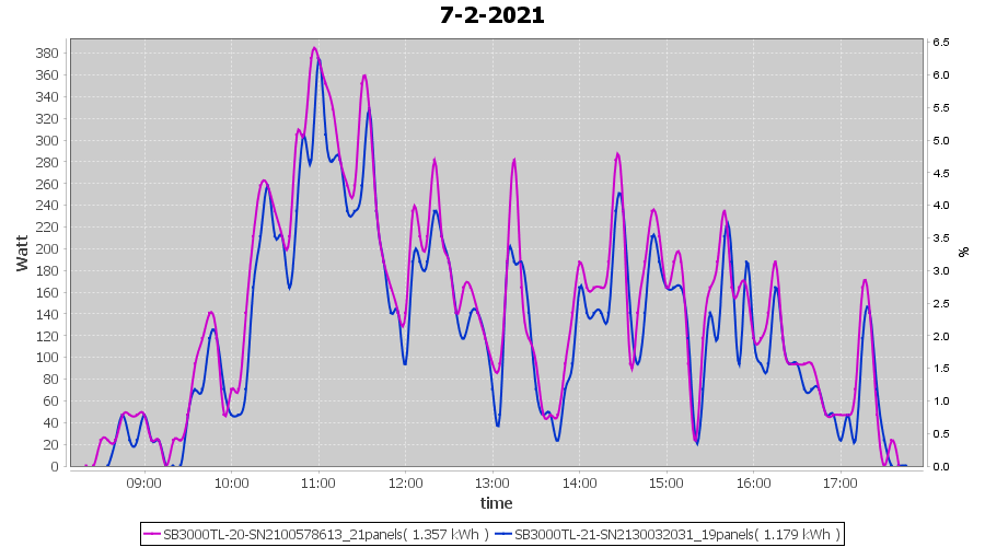 | 7-2-2021 | kWh | Sum | W/Wp | 2.536 | 6000 | 0.4 | 1.173 | € 0.91 | 0.7 |
