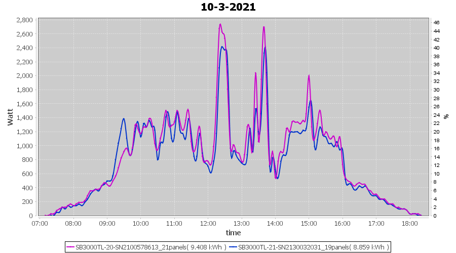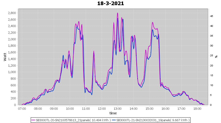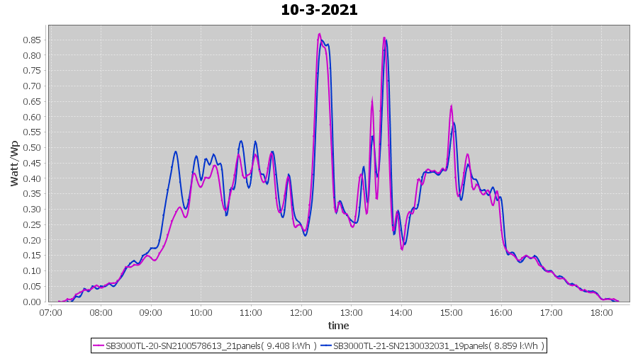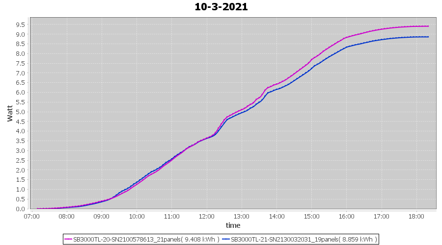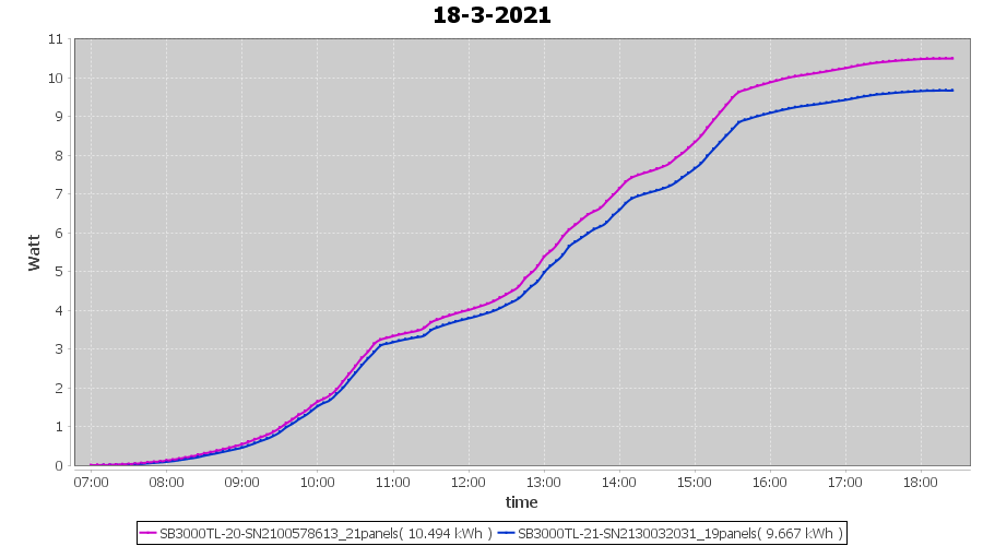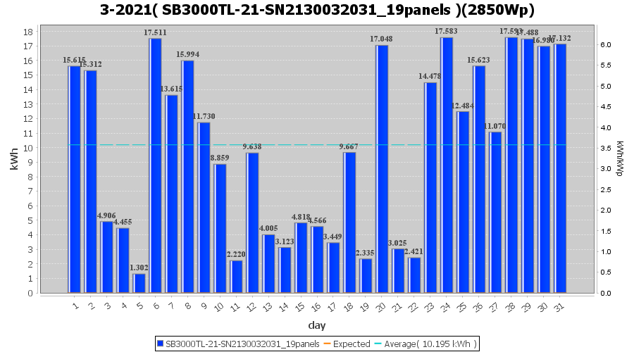 | 10-3-2021 | kWh | Sum | W/Wp | 18.267 | 6000 | 3.0 | 8.448 | € 6.57 | 2.8 |