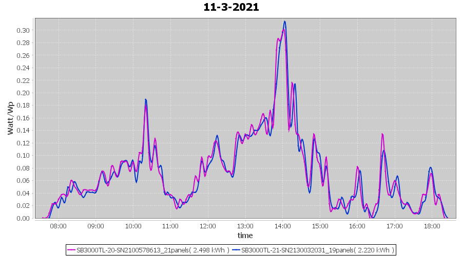| 11-3-2021 | kWh | Sum | W/Wp | 4.718 | 6000 | 0.8 | 2.182 | € 1.70 | 0.7 |