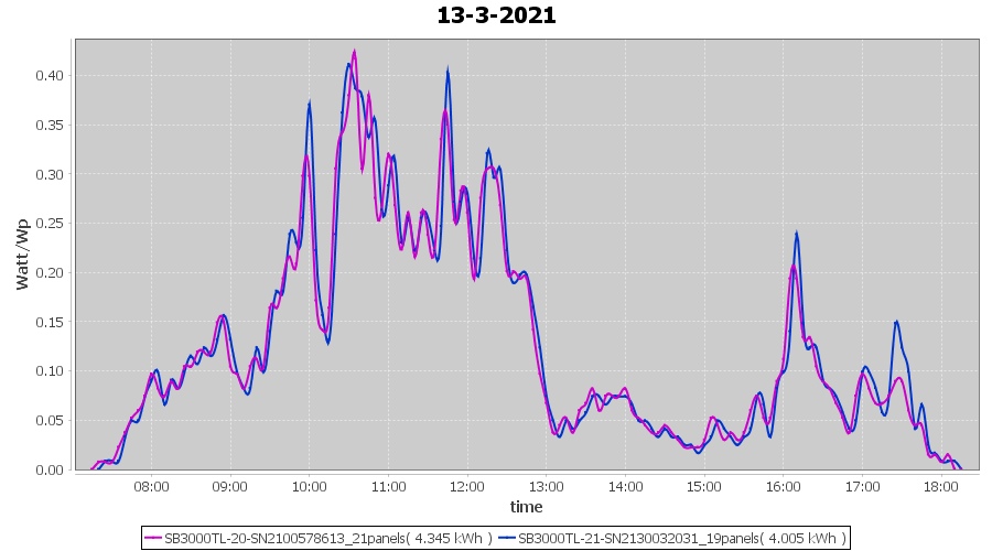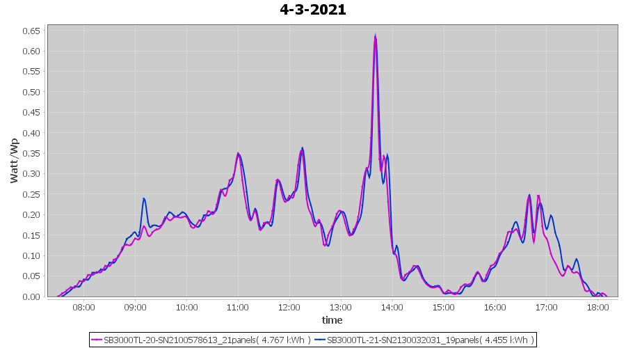 | 4-3-2021 | kWh | Sum | W/Wp | 9.222 | 6000 | 1.5 | 4.265 | € 3.32 | 1.4 |