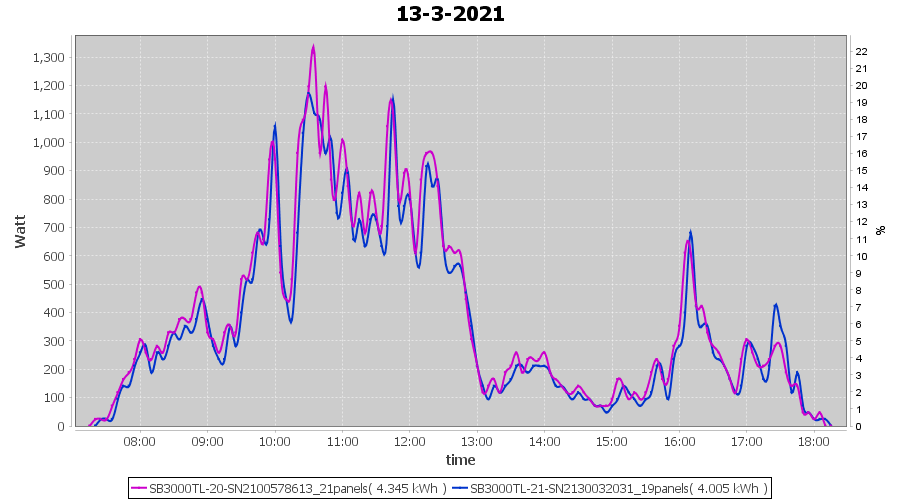 | 13-3-2021 | kWh | Sum | W/Wp | 8.350 | 6000 | 1.4 | 3.862 | € 3.00 | 1.3 |