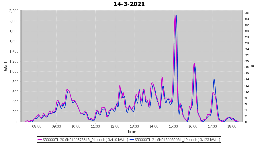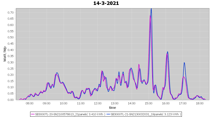 | 14-3-2021 | kWh | Sum | W/Wp | 6.533 | 6000 | 1.1 | 3.022 | € 2.35 | 1.0 |