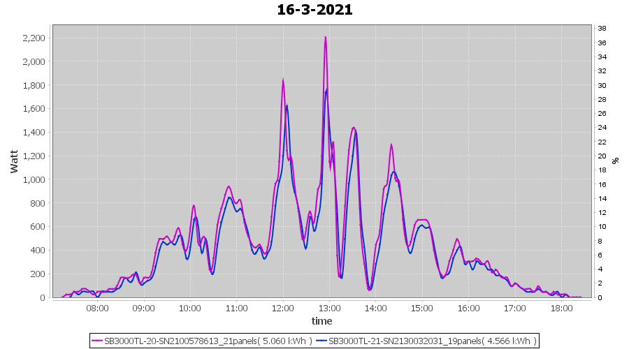 | 16-3-2021 | kWh | Sum | W/Wp | 9.626 | 6000 | 1.6 | 4.452 | € 3.46 | 1.5 |