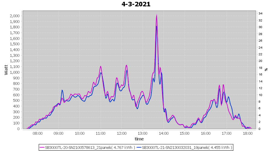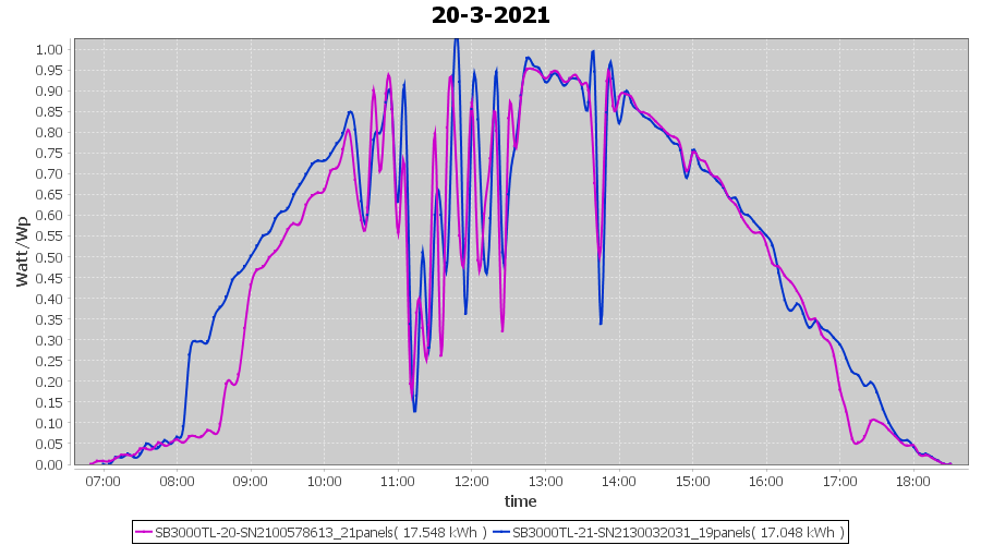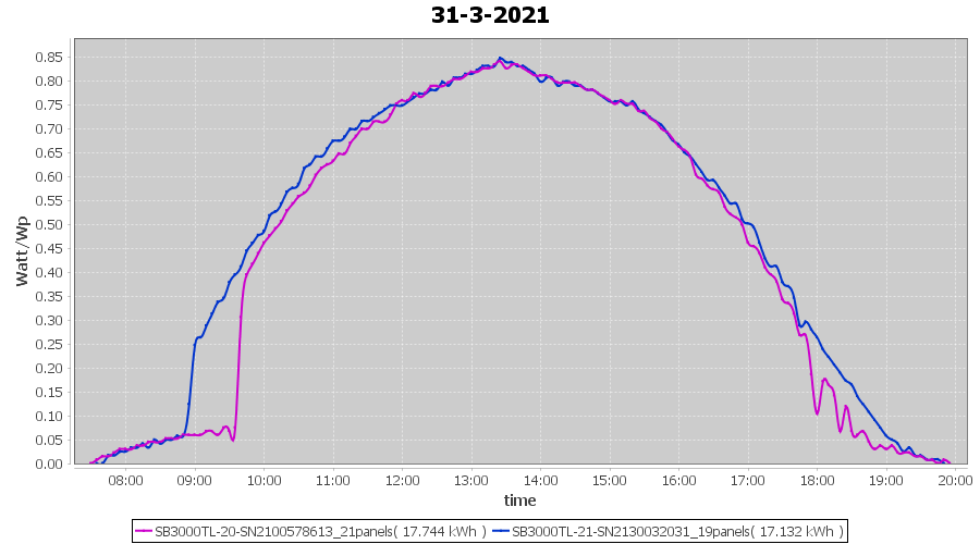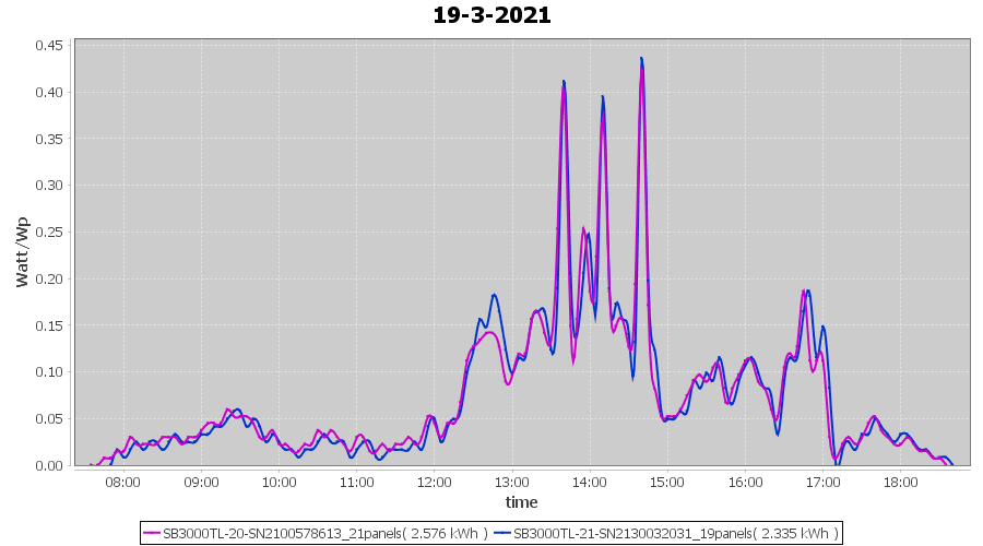 | 19-3-2021 | kWh | Sum | W/Wp | 4.911 | 6000 | 0.8 | 2.271 | € 1.77 | 0.8 |