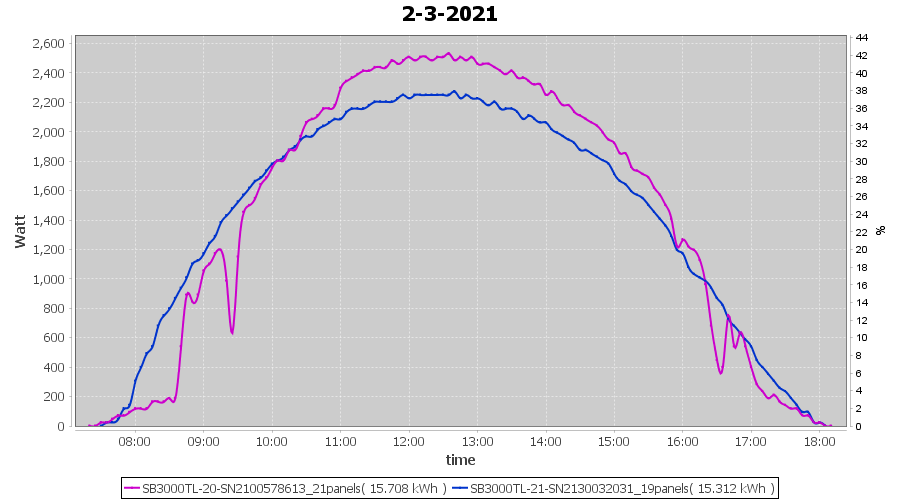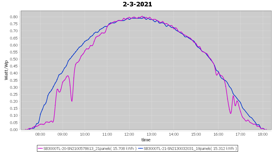 | 2-3-2021 | kWh | Sum | W/Wp | 31.020 | 6000 | 5.2 | 14.347 | € 11.15 | 4.8 |