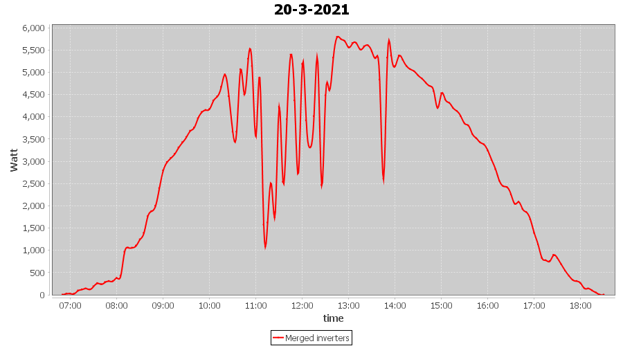 | 20-3-2021 | kWh | Sum | W/Wp | 34.596 | 6000 | 5.8 | 16.001 | € 12.44 | 5.3 |