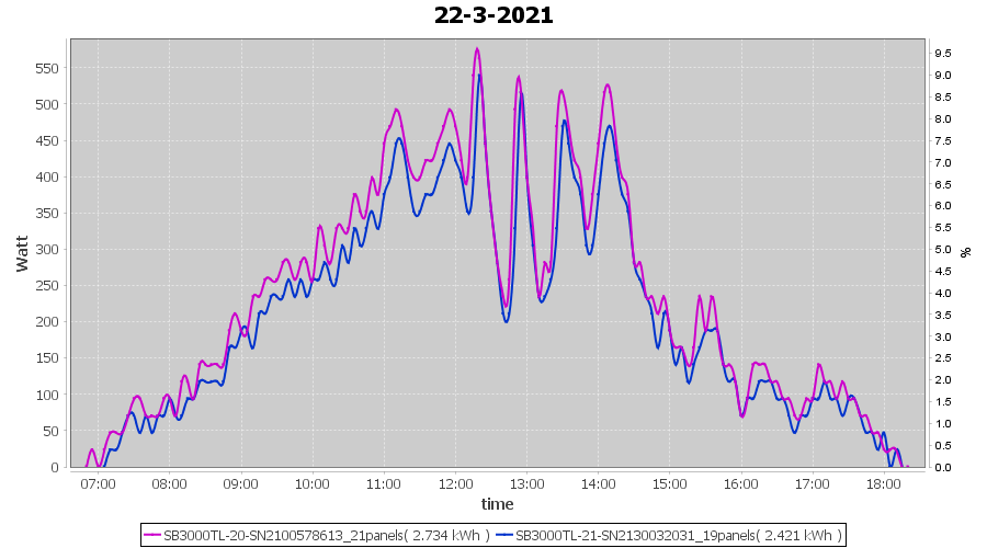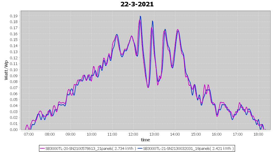| 22-3-2021 | kWh | Sum | W/Wp | 5.155 | 6000 | 0.9 | 2.384 | € 1.85 | 0.8 |