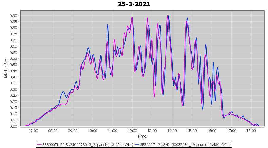| 25-3-2021 | kWh | Sum | W/Wp | 25.905 | 6000 | 4.3 | 11.981 | € 9.31 | 4.0 |