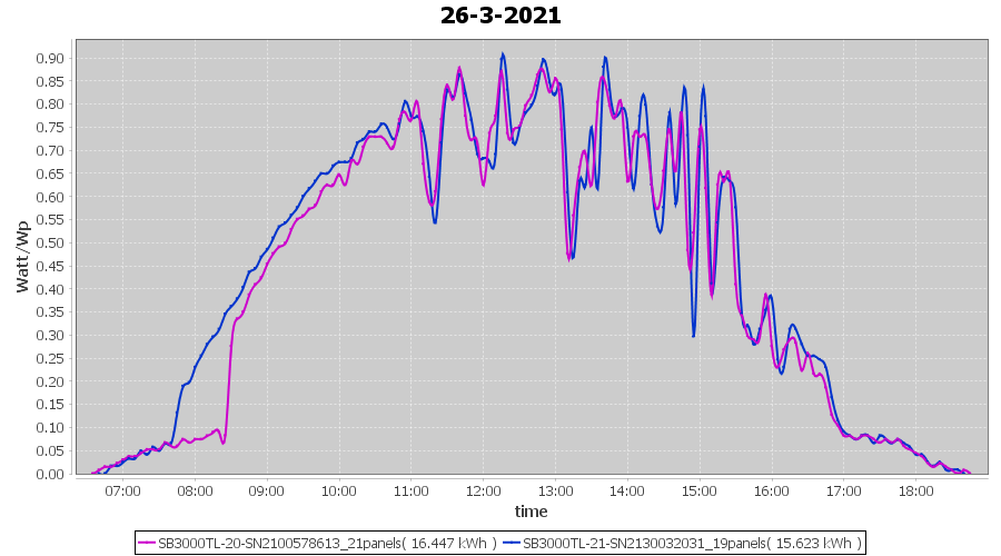 | 26-3-2021 | kWh | Sum | W/Wp | 32.070 | 6000 | 5.3 | 14.832 | € 11.53 | 4.9 |