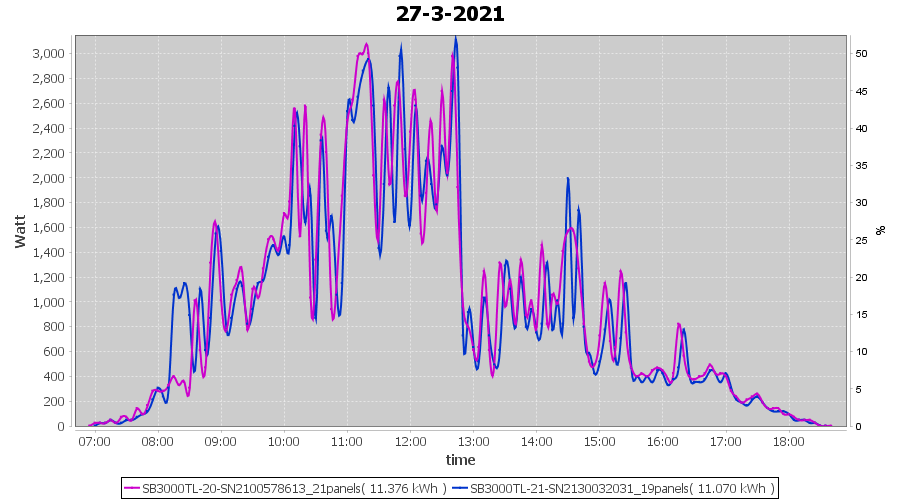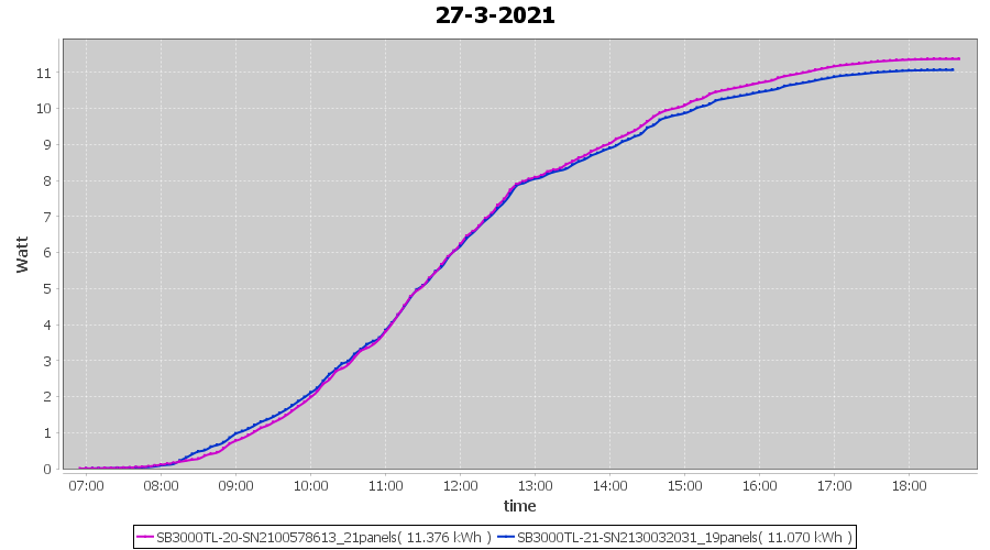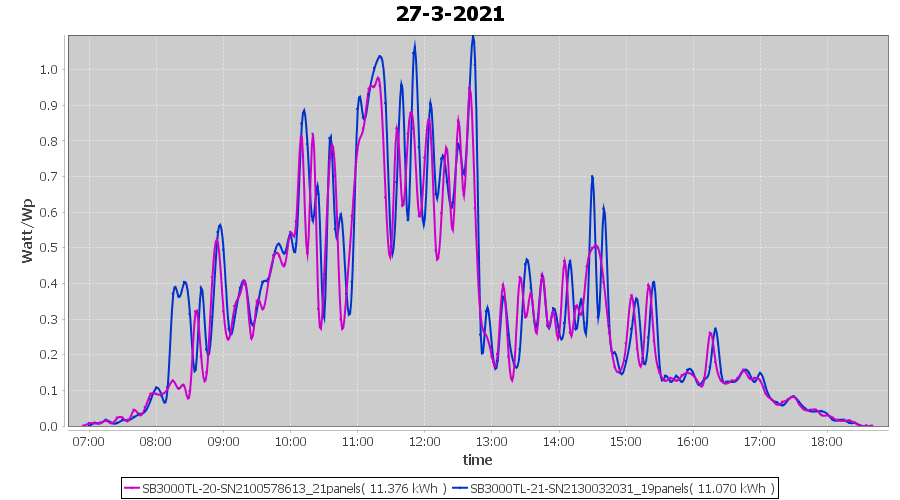 | 27-3-2021 | kWh | Sum | W/Wp | 22.446 | 6000 | 3.7 | 10.381 | € 8.07 | 3.5 |