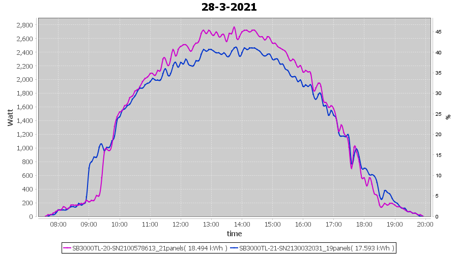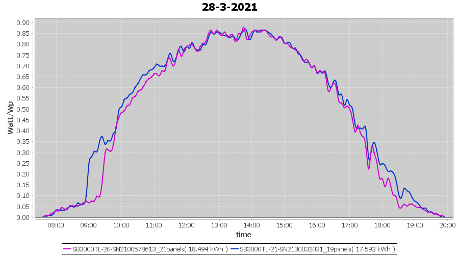 | 28-3-2021 | kWh | Sum | W/Wp | 36.087 | 6000 | 6.0 | 16.690 | € 12.97 | 5.6 |