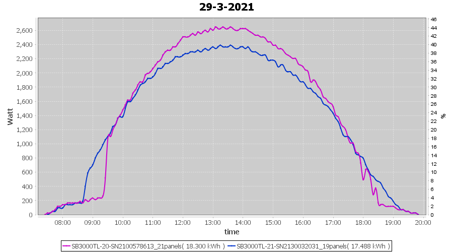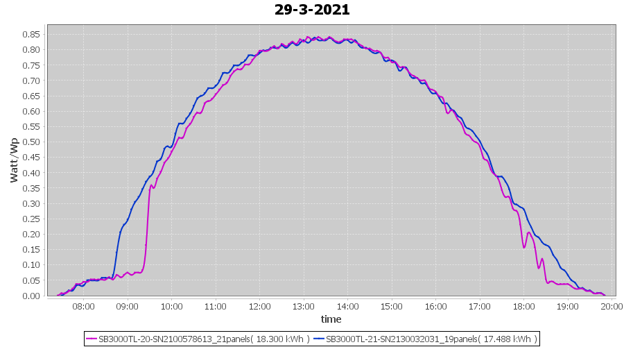 | 29-3-2021 | kWh | Sum | W/Wp | 35.788 | 6000 | 6.0 | 16.552 | € 12.87 | 5.5 |