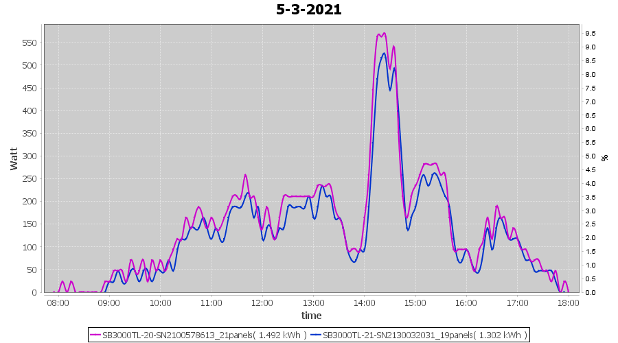 | 5-3-2021 | kWh | Sum | W/Wp | 2.794 | 6000 | 0.5 | 1.292 | € 1.00 | 0.4 |