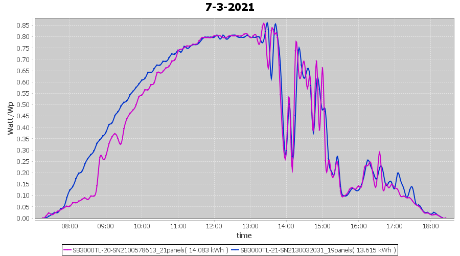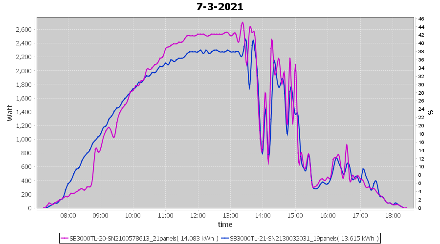 | 7-3-2021 | kWh | Sum | W/Wp | 27.698 | 6000 | 4.6 | 12.810 | € 9.96 | 4.3 |