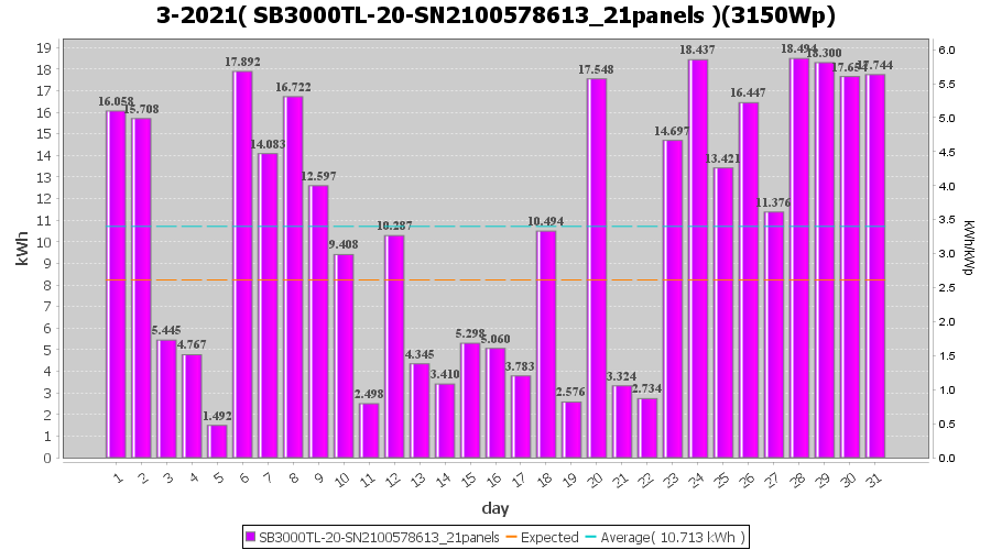 | SB3000TL-20-SN2100578613_21panels | 3150 | 255.150 | 81.0 | 332.099 | 105.4 | 130.2% | 332.099 | 105.4 | 130.2% |