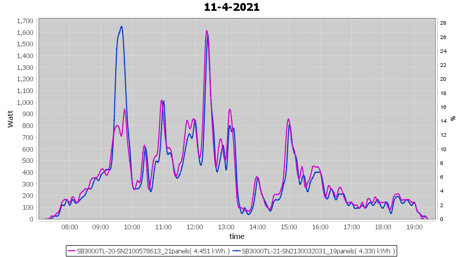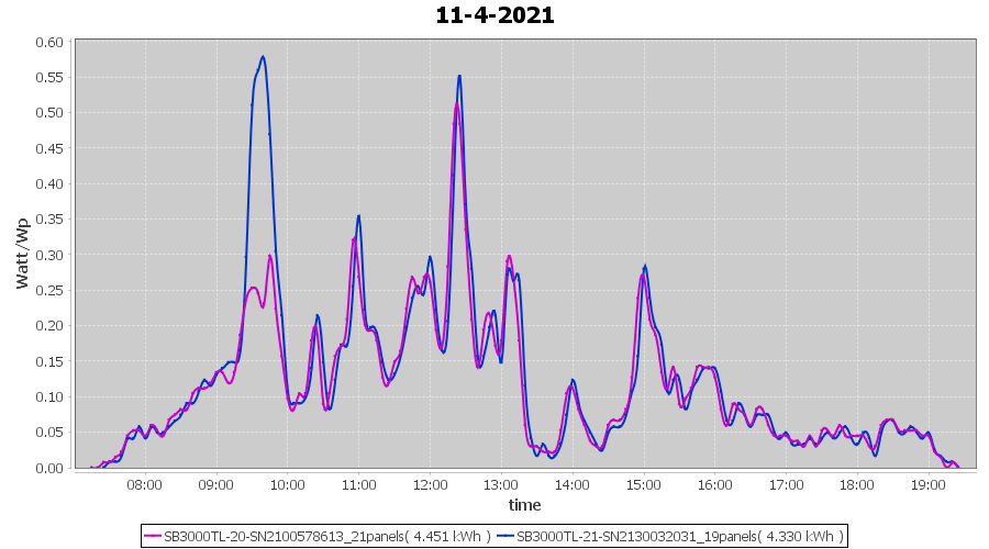 | 11-4-2021 | kWh | Sum | W/Wp | 8.781 | 6000 | 1.5 | 4.061 | € 3.16 | 1.1 |