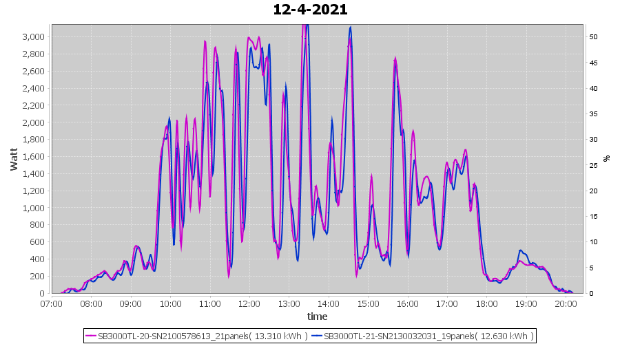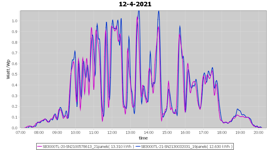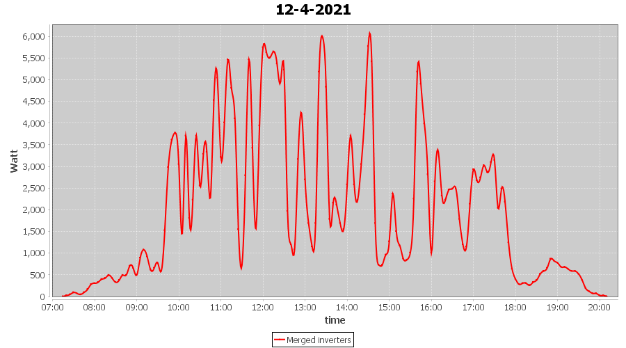 | 12-4-2021 | kWh | Sum | W/Wp | 25.940 | 6000 | 4.3 | 11.997 | € 9.33 | 3.4 |