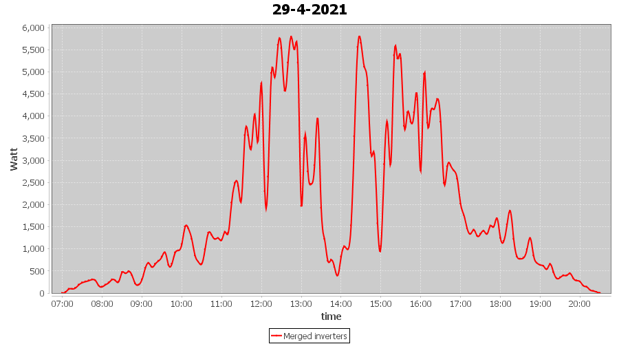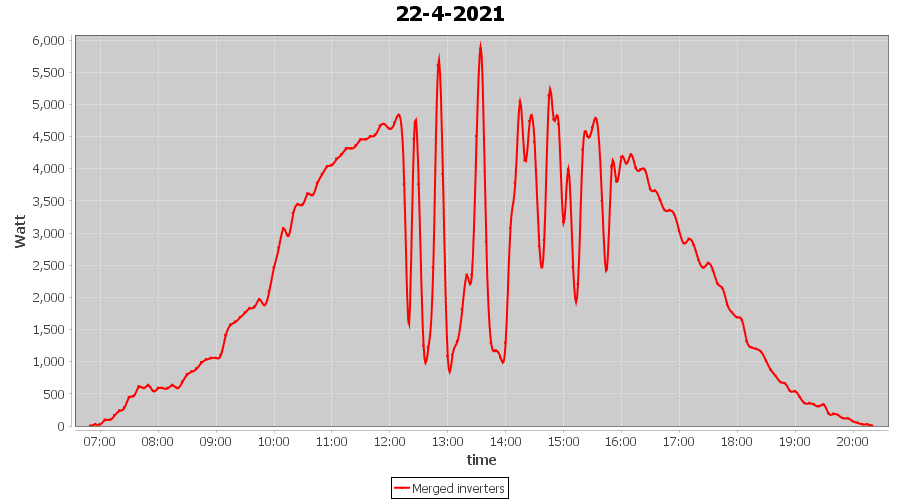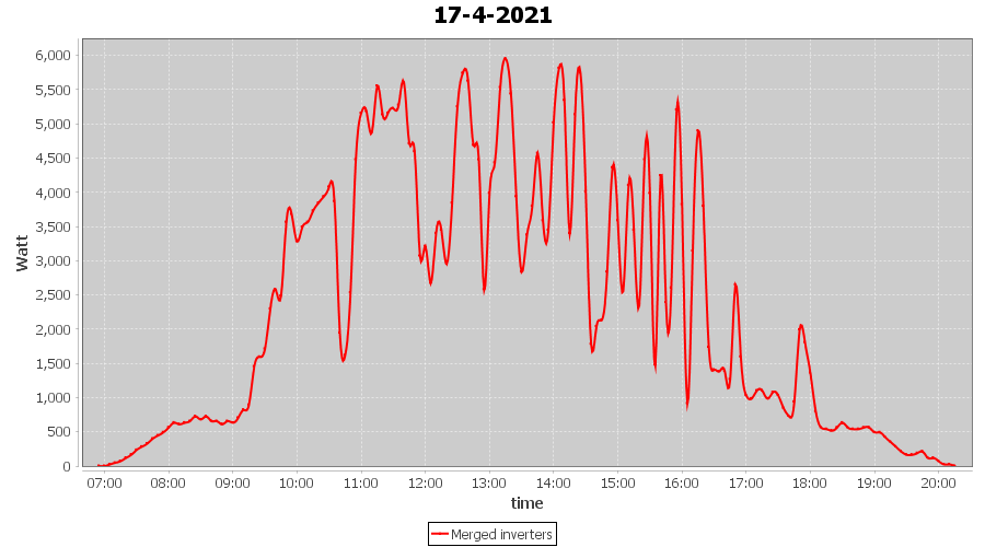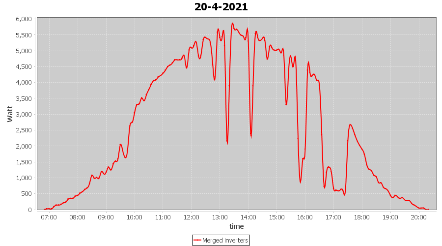 | 20-4-2021 | kWh | Sum | W/Wp | 35.728 | 6000 | 6.0 | 16.524 | € 12.84 | 4.6 |