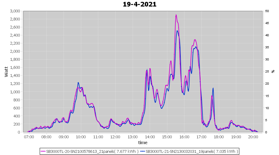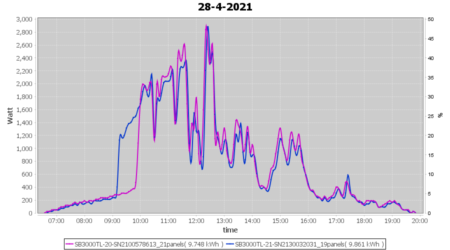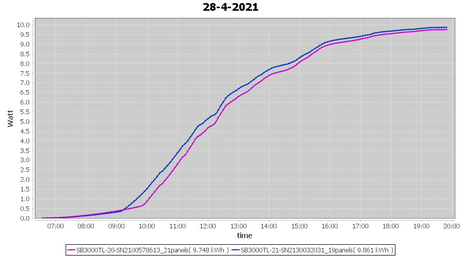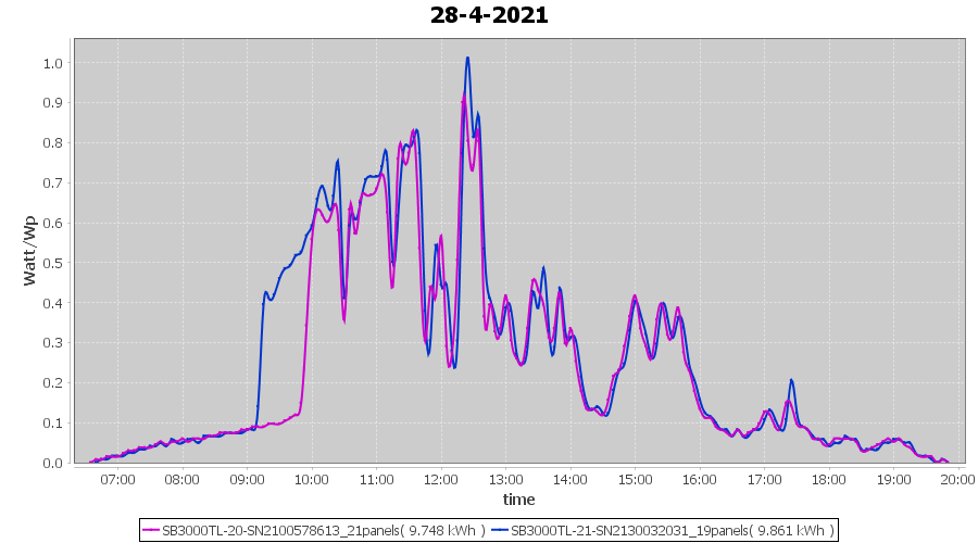 | 28-4-2021 | kWh | Sum | W/Wp | 19.609 | 6000 | 3.3 | 9.069 | € 7.05 | 2.6 |