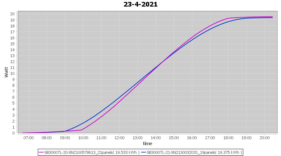 | 21-4-2021 | kWh | Sum | W/Wp | 23.698 | 6000 | 3.9 | 10.960 | € 8.52 | 3.1 |
