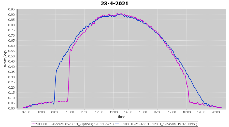 | 23-4-2021 | kWh | Sum | W/Wp | 38.908 | 6000 | 6.5 | 17.995 | € 13.99 | 5.1 |