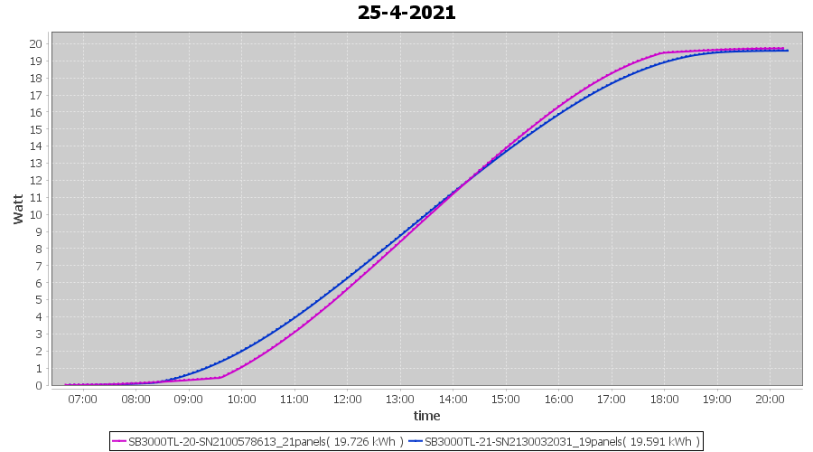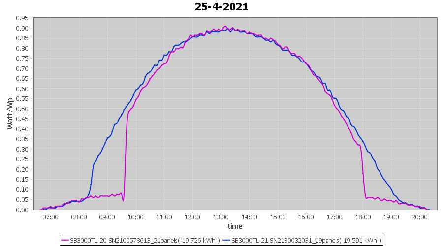 | 25-4-2021 | kWh | Sum | W/Wp | 39.317 | 6000 | 6.6 | 18.184 | € 14.13 | 5.1 |