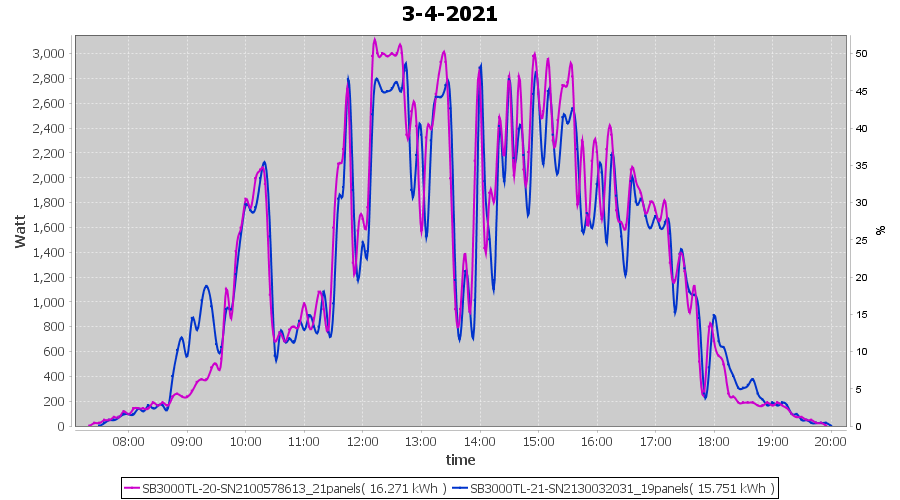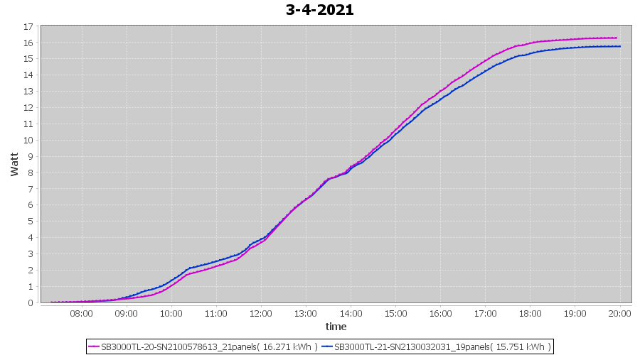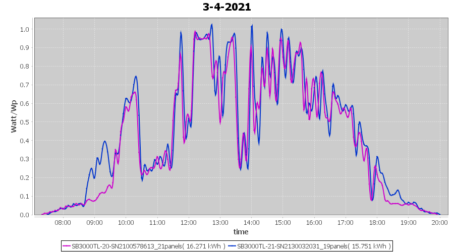 | 3-4-2021 | kWh | Sum | W/Wp | 32.022 | 6000 | 5.3 | 14.810 | € 11.51 | 4.2 |