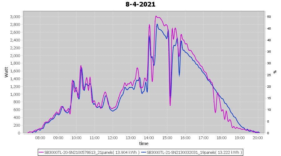 | 8-4-2021 | kWh | Sum | W/Wp | 27.126 | 6000 | 4.5 | 12.546 | € 9.75 | 3.5 |