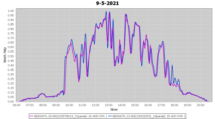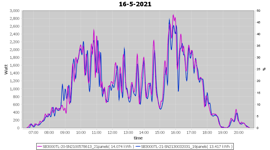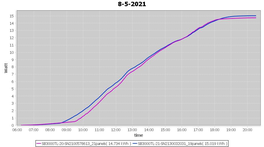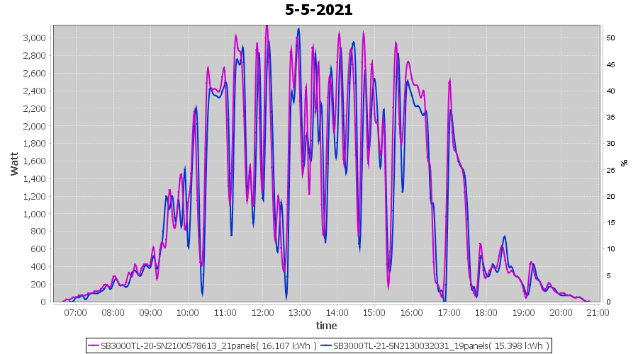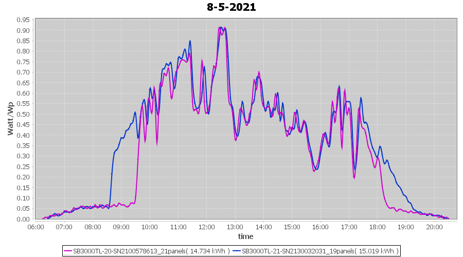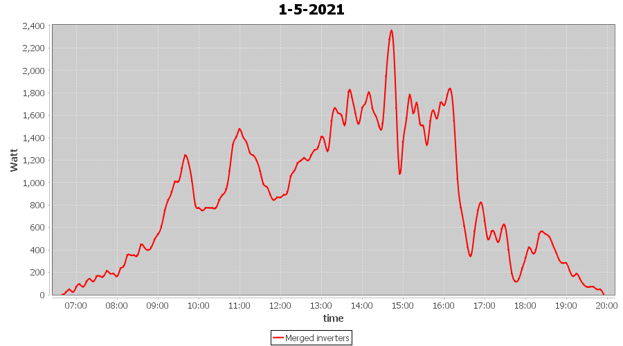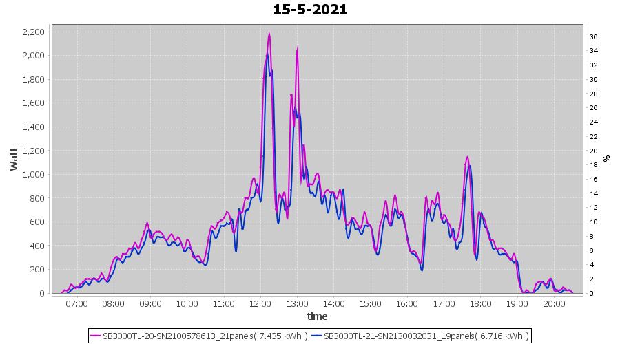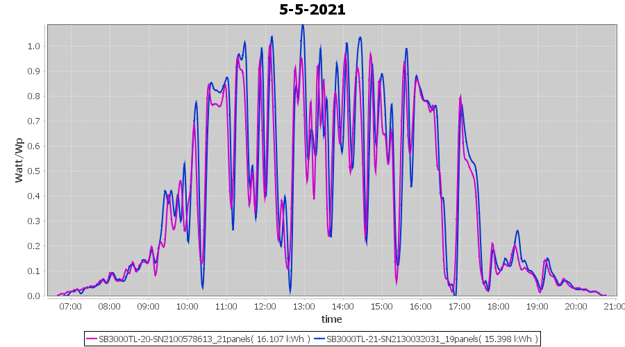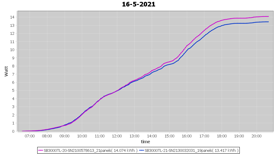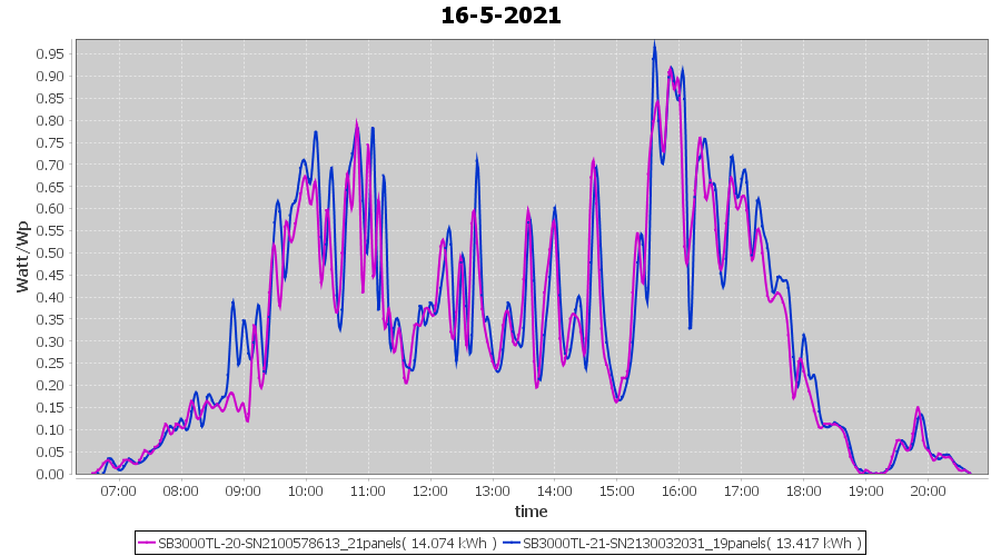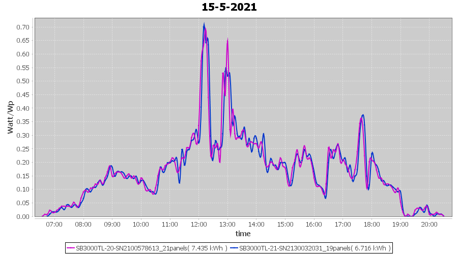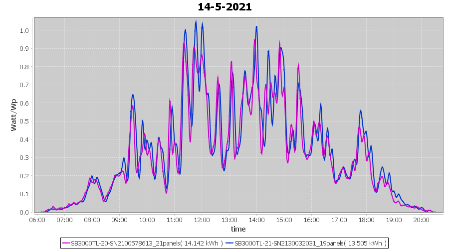 | 15-5-2021 | kWh | Sum | W/Wp | 14.151 | 6000 | 2.4 | 6.545 | € 5.09 | 1.9 |