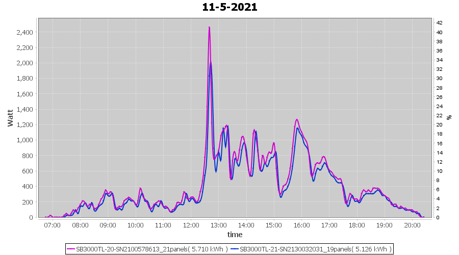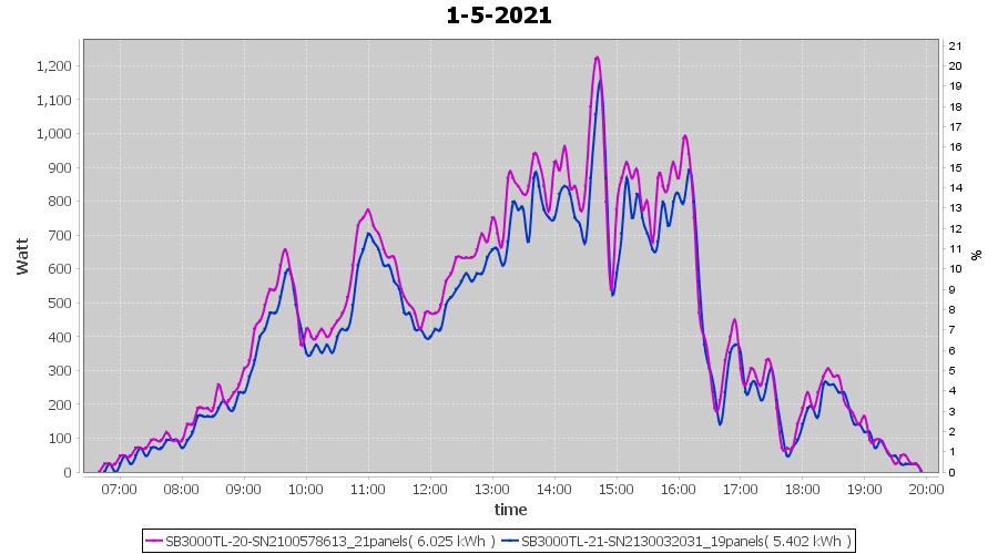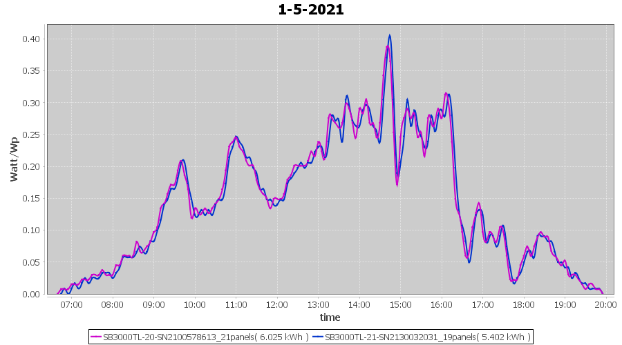 | 1-5-2021 | kWh | Sum | W/Wp | 11.427 | 6000 | 1.9 | 5.285 | € 4.11 | 1.6 |