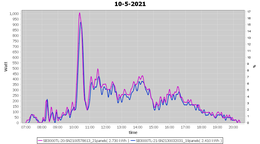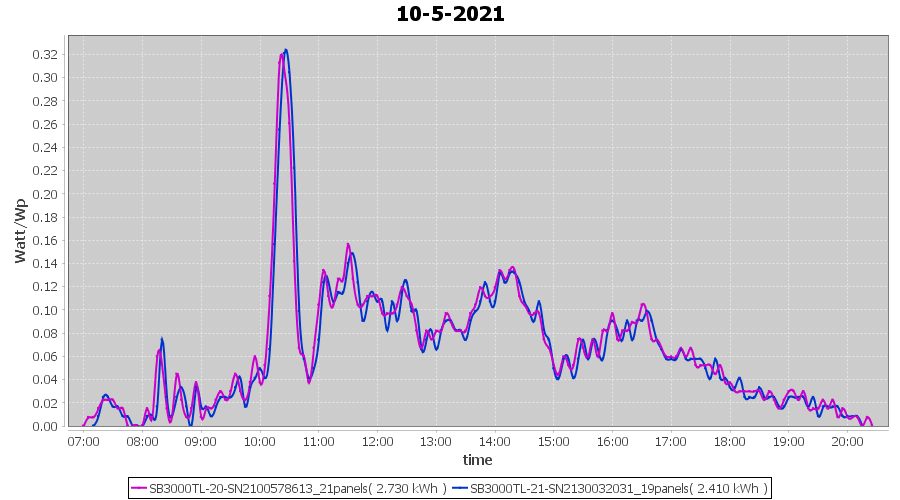 | 10-5-2021 | kWh | Sum | W/Wp | 5.140 | 6000 | 0.9 | 2.377 | € 1.85 | 0.7 |